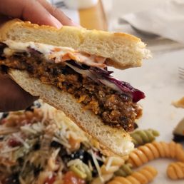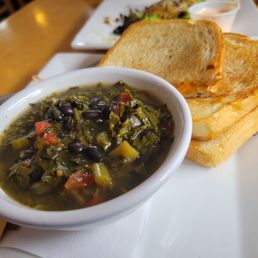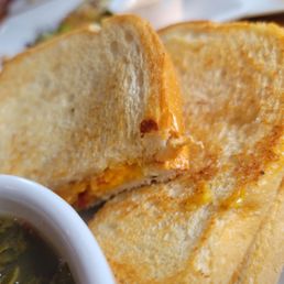 What a great Downtown August find, live music, friendly service, good food and incredible cakes! We three vegetarians enjoyed the fried green tomatoes, Grilled cheese, da bomb-mi and the tree hugger. All delish, especially the veggie burger "bahn mi. Luckily we saved some room for dessert, canary lemon, red velvet+ and perfect chocolate cakes. The Word to the wise, get the half slices of cake. We did not.